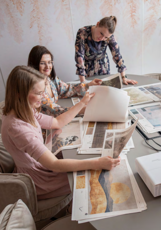 Nasze tapety nie są wzorami do zapętlenia. To pełnoformatowe kompozycje artystyczne, które mają początek i koniec - tak jak obraz. Tworzymy je na wymiar. Zawsze z myślą o konkretnej przestrzeni.