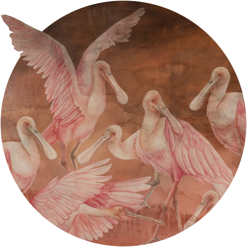 Tempesta Ajaja to połączenie intrygującego obrazu Tempesta z ręcznie malowanymi ptakami- warzęchami różowymi, których łacińska nazwa to Platalea ajaja. Każda warzęcha została narysowana ręcznie z wyjątkową dbałością o szczegóły. Zestawienie uroczych, różowych ptaków z nieco mrocznym tłem, daje wyjątkowo niebanalny efekt.