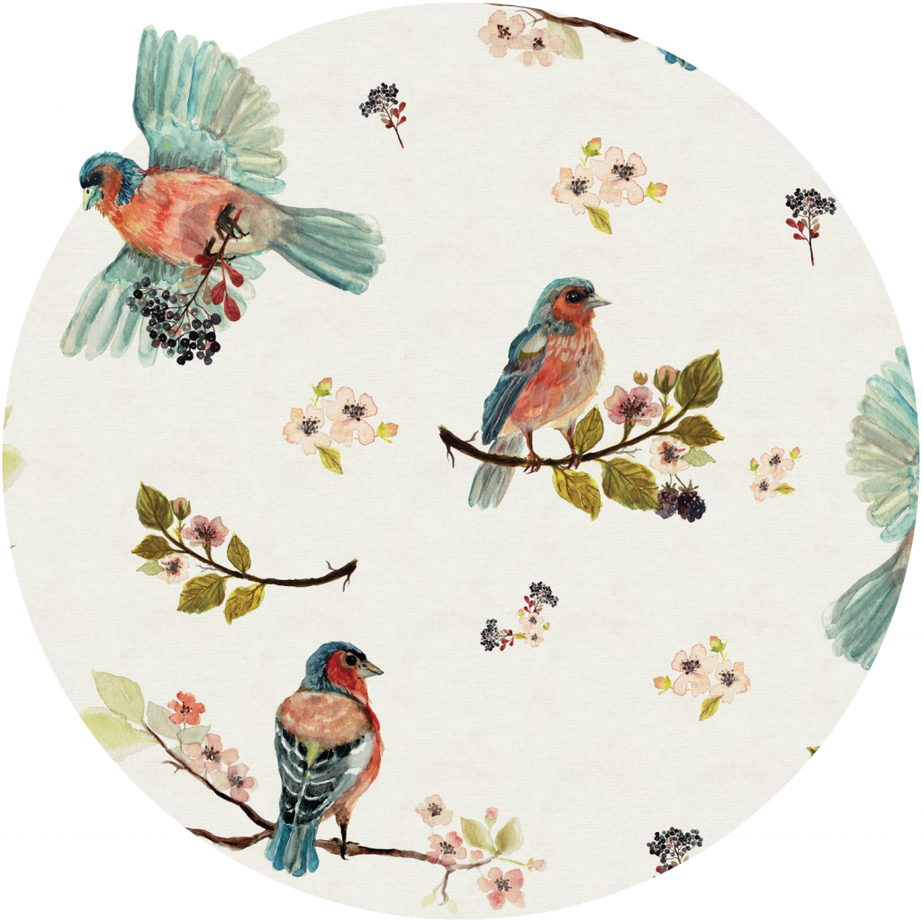 Uccello Cantante - z włoskiego - Ptaszek Śpiewa. Delikatna tapeta w ręcznie malowane zięby. Akwarelowe ptaszki, przygotowane zostały na strukturze lnu w kolorze kremowym