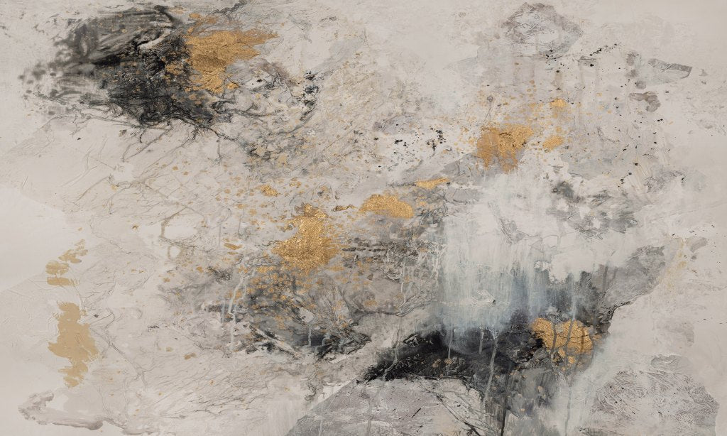 Fog to bardzo dynamiczne i zarazem eleganckie dzieło. Fog czyli po polsku mgła, jest emblematem rzeczy nieokreślonych, stapiania się powietrza i wody, zaciemnionych, zamazanych kształtów i zarysów. Dokładnie taki jest obraz Magdaleny Lenartowicz, buzują w nim żywioły powietrza, wody i ziemi. Finezyjne złote elementy dodają szyku utrzymanemu w skali odcieni szarości dziełu. Fog będzie nieodzownym elementem nowoczesnych, jasnych wnętrz.