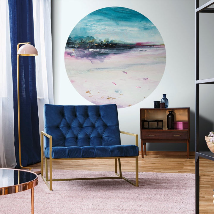 Tapety wycinane w kształcie koła montuje się szybko i intuicyjnie – to jeden z najprostszych sposobów na efektowną zmianę we wnętrzu. Wystarczy gładka, czysta i sucha ściana. Tapeta wydrukowana jest na materiale samoprzylepnym. Po wyznaczeniu środka kompozycji wystarczy przyłożyć tapetę, wygładzić raklą od środka na zewnątrz i usunąć ewentualne pęcherzyki powietrza.