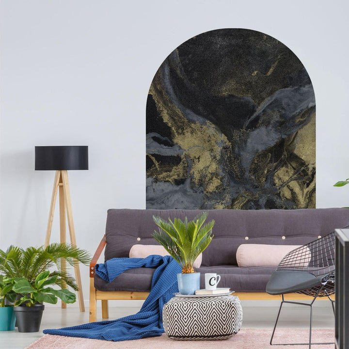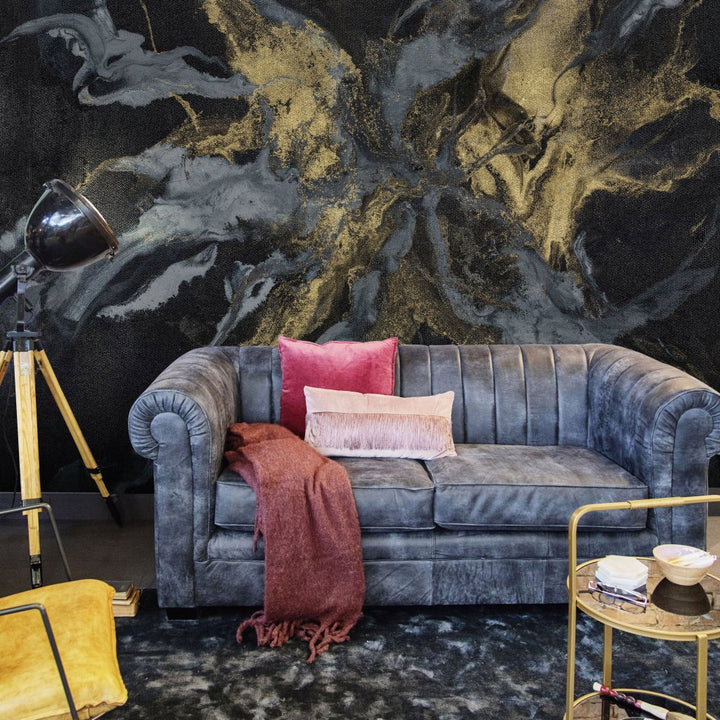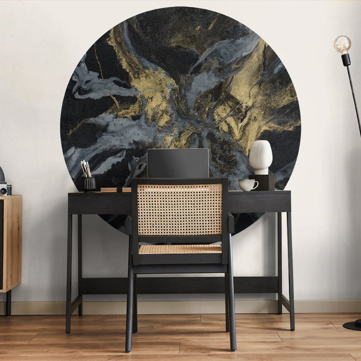 Gra blasków i cieni. Inspirująca tapeta utrzymana w ciemnej kolorystyce. Połączenia złota, szarości i czerni nadaje tapecie wyrazu klasyki. Idealnie sprawdzi się w garderobie każdego mężczyzny a także w nowoczesnym wnętrzu.