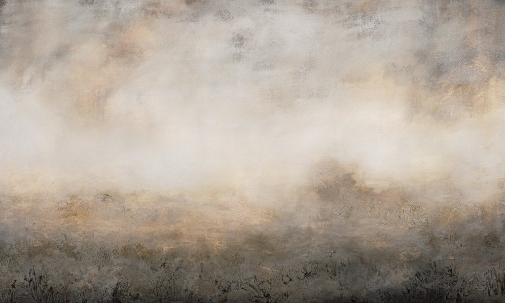 Macchiato w języku włoskim oznacza "poplamiony". Latte macchiato to mleko poplamione kawą. Nieoczywisty pejzaż łąki autorstwa Ewy Mróz przedstawia zapadającą w zimowy sen łąkę zanurzoną w mlecznej mgle. Obraz nieco tajemniczy, ale jednocześnie hipnotyzujący, będzie idealnym uzupełnieniem drewnianego wyposażenia wnętrza.