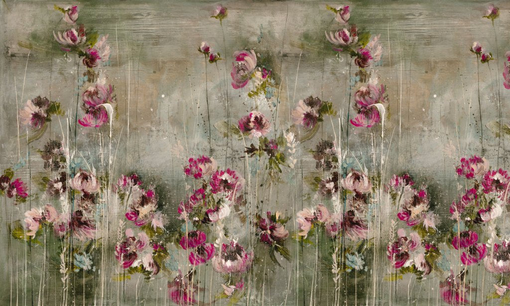 Malva zachwyca połączeniem pudrowych róży, fuksji z tonującą je szałwią i szarościami. Wyjątkowy sposób namalowania wzoru sprawia, że można go umieścić na ścianie w dwojaki sposób. W zależności od wnętrza, równie spektakularnie wyglądać będą łodygi “wyrastające” z naszej podłogi jak i z suftu.