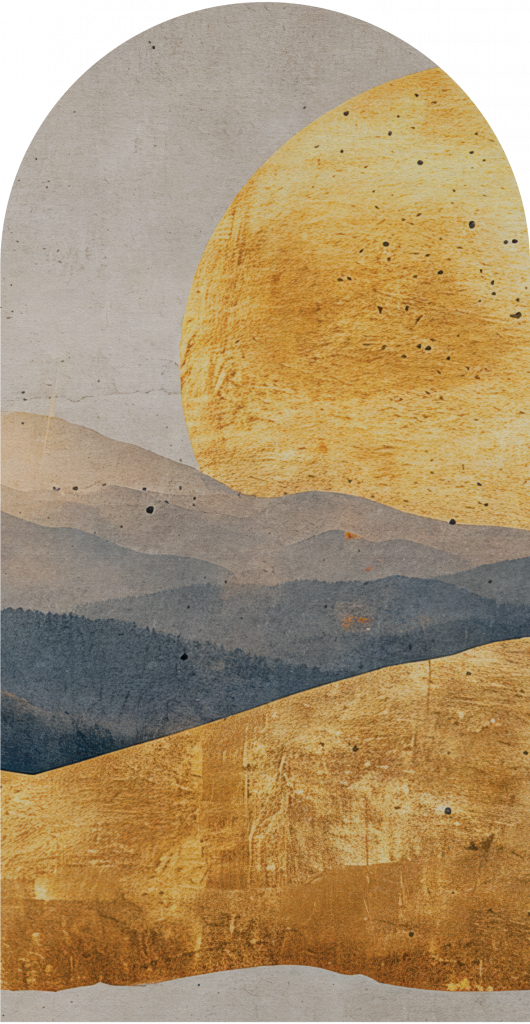Oka przedstawia spokojny krajobraz ze spektakularnym, złotym słońcem wznoszącym się nad warstwami wzgórz, które są utrzymane w odcieniach niebieskiego i złota. Delikatne przejścia kolorystyczne i tekstura nadają mu artystycznego, niemal abstrakcyjnego charakteru. Oka idealnie pasuje do nowoczesnych wnętrz, w których dominują neutralne kolory i minimalistyczny design. Może być centralnym elementem dekoracyjnym w salonie, gdzie przyciągnie uwagę swoim spokojem i elegancją, dodając wnętrzu ciepła, przytulności i luksusu. W sypialni obraz ten może wprowadzać atmosferę relaksu i harmonii, sprzyjając wyciszeniu i odpoczynkowi.