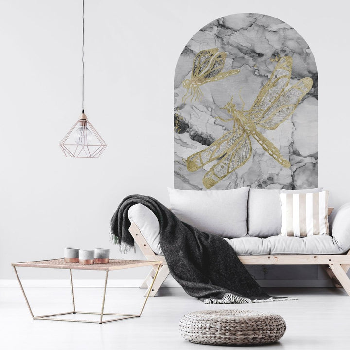 Kolekcja Arte to wzory namalowane przez polskich artystów. Kolekcja ręcznie malowanych grafik przez Pracownię Annowa - premierowy wzór tapeta Portafortuna B&W z włoskiego amulet. Obraz w stonowanej wersji kolorystycznej w odcieniach szarości i bieli, oraz majestatyczne ważki w barwach złota.