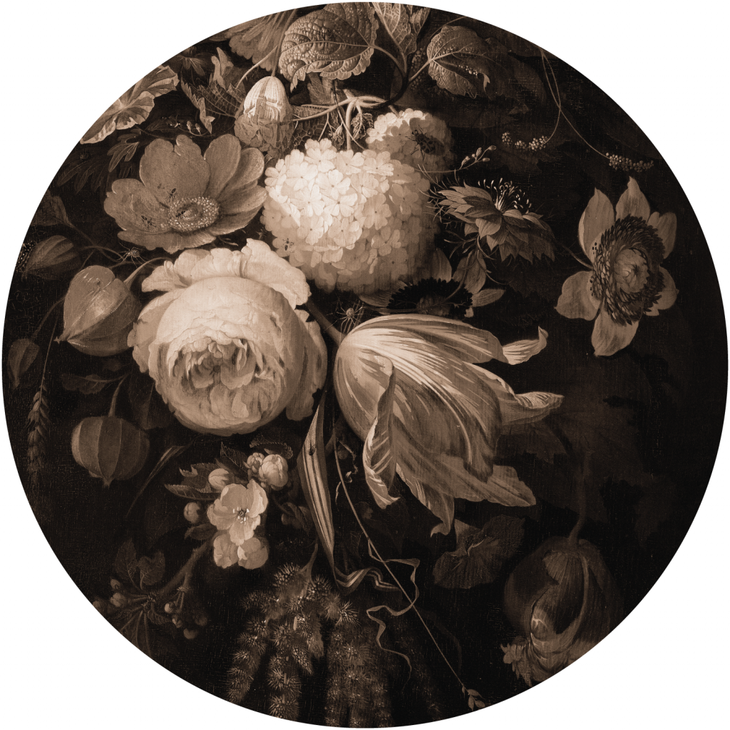 Boudoir Beige jest bogato zdobionym wzorem kwiatowym inspirowanym obrazem Abrahama Mignona. Duże kwiaty, obfite kształty zaprezentowane w odcieniach beżu na ciemnym tle, tworzą prawdziwe dzieło sztuki na ścianie.