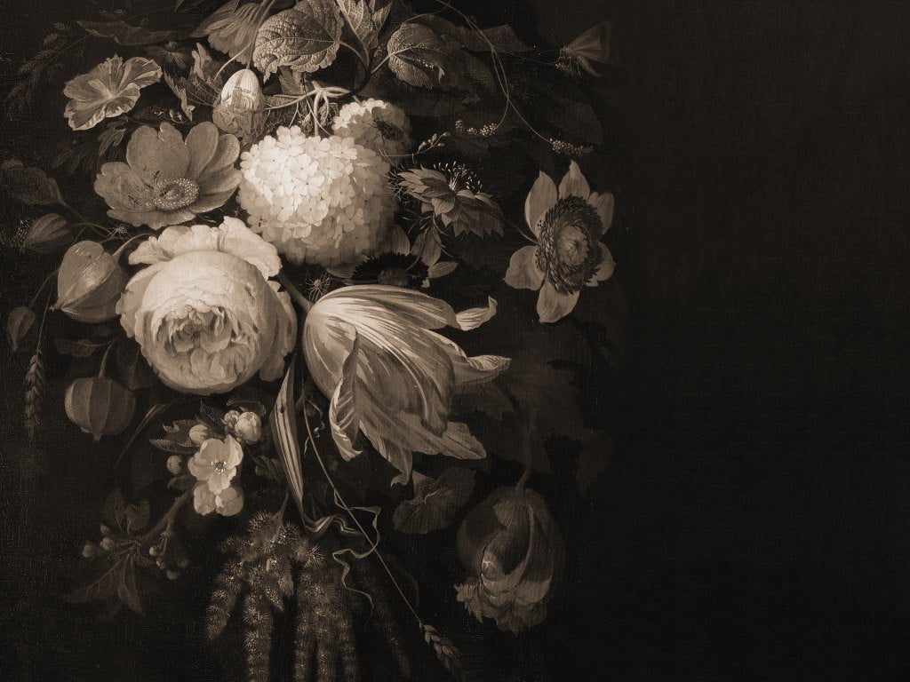 Boudoir Beige jest bogato zdobionym wzorem kwiatowym inspirowanym obrazem Abrahama Mignona. Duże kwiaty, obfite kształty zaprezentowane w odcieniach beżu na ciemnym tle, tworzą prawdziwe dzieło sztuki na ścianie.
