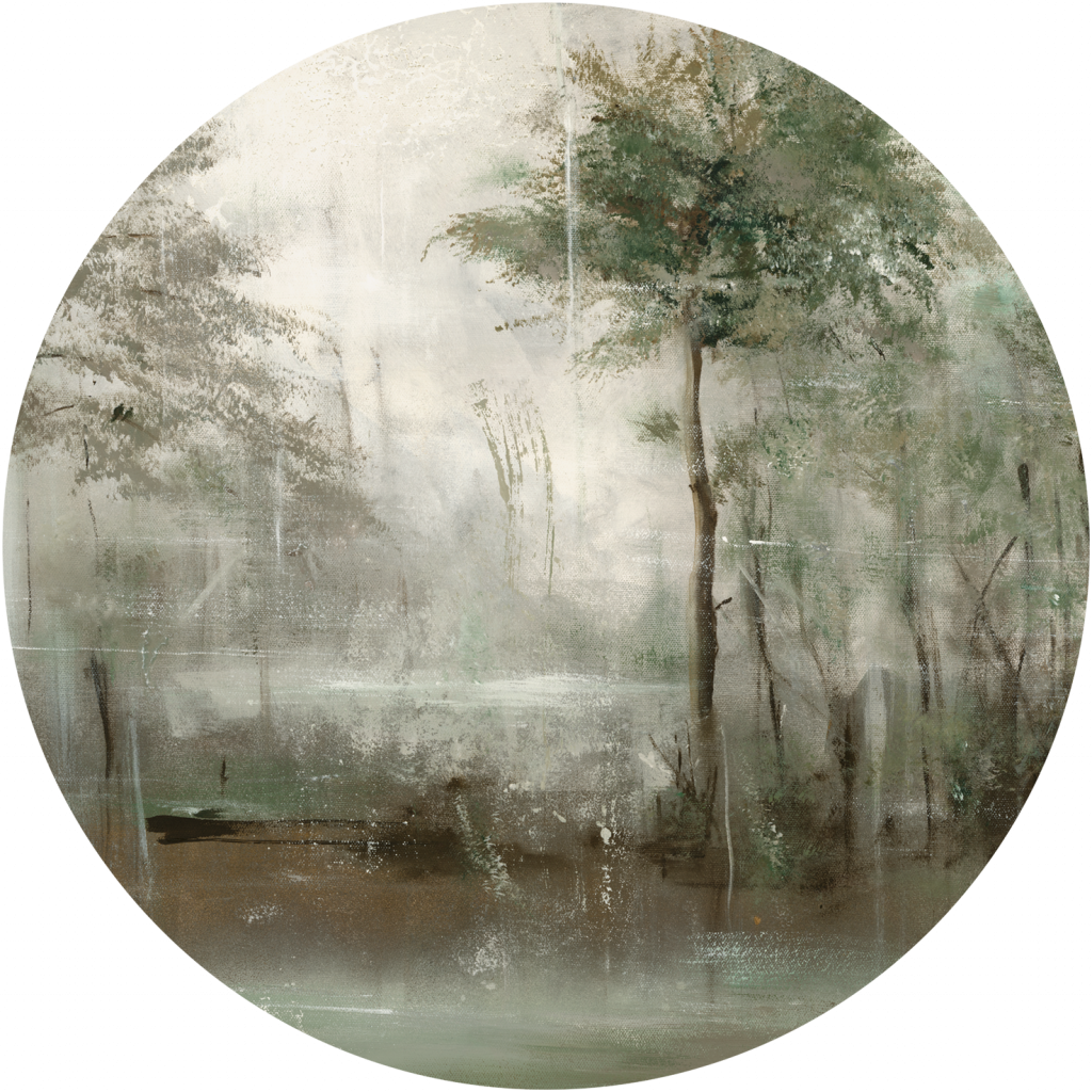 Tapeta „Lacus” to malarska opowieść o spokoju, ciszy i subtelnej potędze natury. Inspirowana krajobrazem odbitym w tafli jeziora, wzór przedstawia mglisty pejzaż leśny, zanurzony w kojącej atmosferze poranka. Delikatnie rozmyte kontury drzew i subtelne przejścia tonalne sprawiają wrażenie, jakby obraz był uchwycony przez zasłonę z pary wodnej – co nadaje tapecie poetycki, niemal oniryczny charakter.