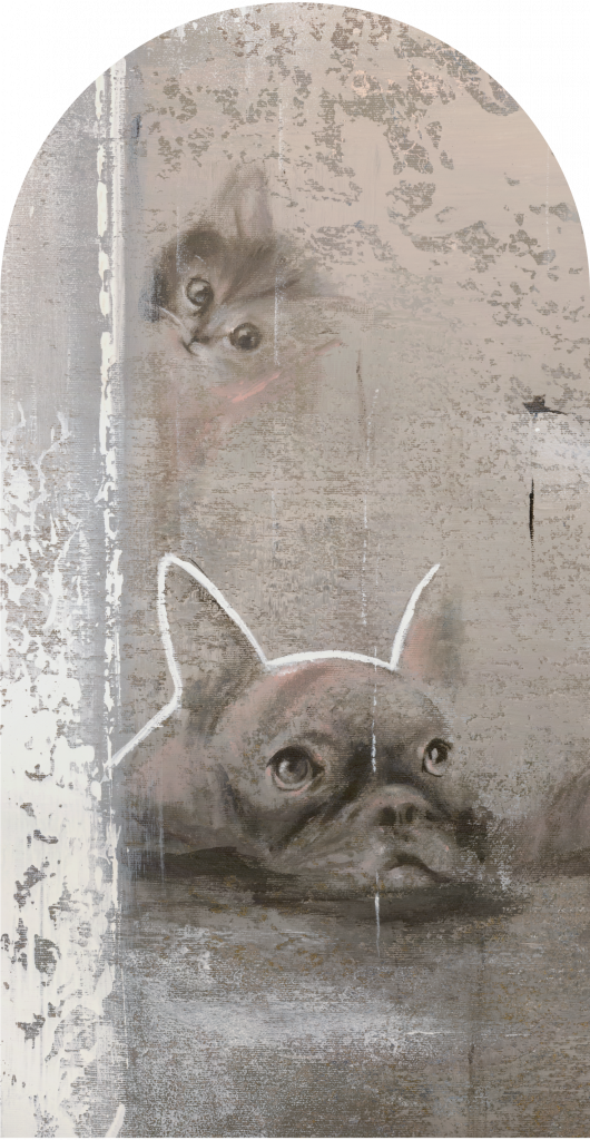 Siesta to uroczy, a jednocześnie stylowy wizerunek dwóch buldogów francuskich oraz kota ciekawsko wychylającego się zza rogu. Tło wzoru jest stonowane, utrzymane w odcieniach beżu, szarości i bieli, z delikatnymi przetarciami i teksturami, które nadają całości lekko postarzały, rustykalny charakter. Siesta idealnie wpasuje się w przestrzenie, które wymagają wprowadzenia odrobiny humoru i ciepła. W salonie może stanowić przyciągający wzrok akcent, szczególnie w przestrzeniach urządzonych w stylu skandynawskim, boho czy rustykalnym. Jego stonowane barwy i zabawna tematyka sprawią, że będzie pasował zarówno do minimalistycznych, jak i bardziej eklektycznych aranżacji.