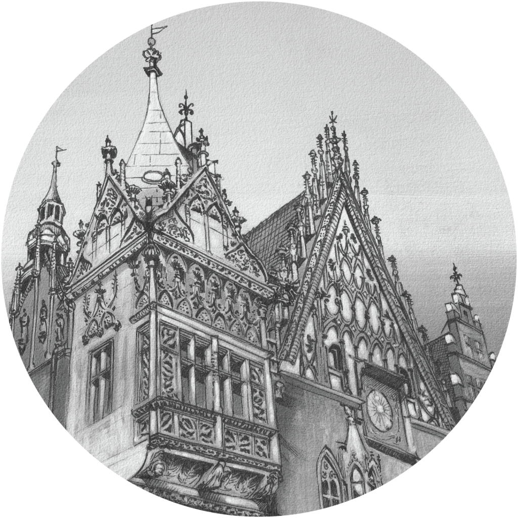 Town Hall obrazuje przepiękny wrocławski ratusz, nazywany perłą architektury gotyckiej Dolnego Śląska. Budowany był aż przez 250 lat – nieustannie upiększany, powiększany oraz doskonalony. Najstarsza część budynku powstała w 1299 roku.