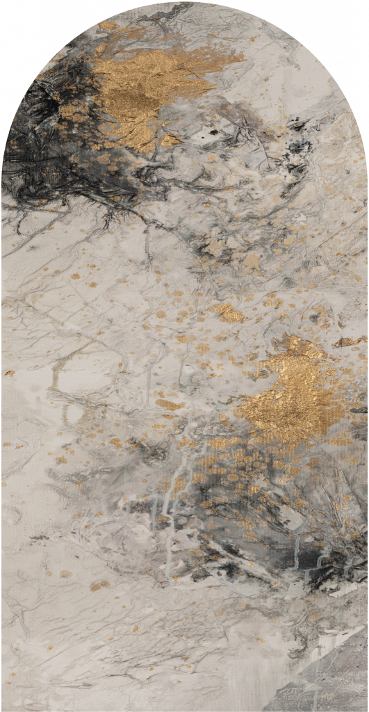 Tapeta Fog to bestsellerowy wzór malarstwa Magdaleny Lenartowicz, który powstał z ręcznie malowanego obraz malowanego akrylem na płótnie. Malarstwo abstrakcyjne w kolorystyce szarości, złamanej beżem, grafitem, dekorowany odcieniami złota.