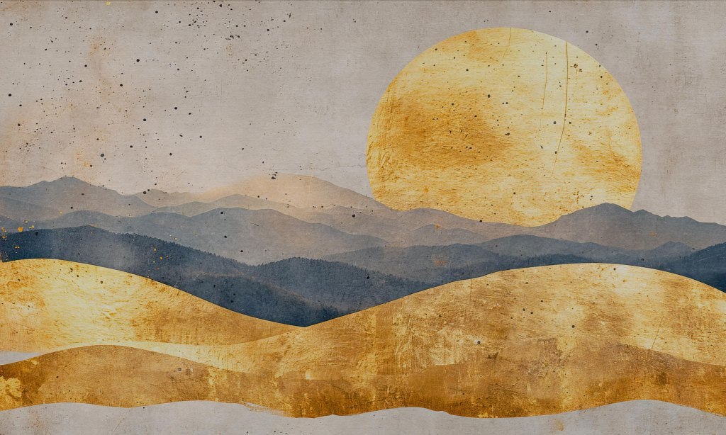 Oka przedstawia spokojny krajobraz ze spektakularnym, złotym słońcem wznoszącym się nad warstwami wzgórz, które są utrzymane w odcieniach niebieskiego i złota. Delikatne przejścia kolorystyczne i tekstura nadają mu artystycznego, niemal abstrakcyjnego charakteru. Oka idealnie pasuje do nowoczesnych wnętrz, w których dominują neutralne kolory i minimalistyczny design. Może być centralnym elementem dekoracyjnym w salonie, gdzie przyciągnie uwagę swoim spokojem i elegancją, dodając wnętrzu ciepła, przytulności i luksusu. W sypialni obraz ten może wprowadzać atmosferę relaksu i harmonii, sprzyjając wyciszeniu i odpoczynkowi.