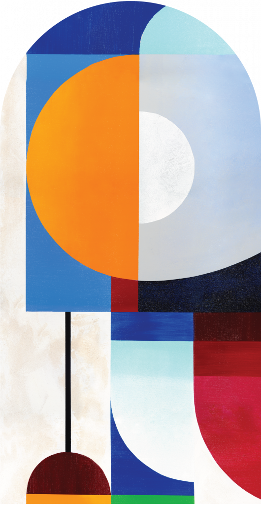 Rio to abstrakcyjną kompozycję, złożoną z geometrycznych kształtów i żywych kolorów. Dominują w nim formy takie jak półkola, prostokąty, linie i elipsy, które są umieszczone na neutralnym, jasnym tle. Kolorystyka wzoru jest intensywna i zróżnicowana, obejmująca odcienie niebieskiego, pomarańczowego, czerwonego, zielonego, różowego i białego. Na całej powierzchni Rio widoczne są delikatne przejścia tonalne i gradienty, które nadają kompozycji głębi i trójwymiarowości. Czarny pionowy pasek z okrągłym zakończeniem w lewej dolnej części dodaje struktury i porządku w abstrakcyjnej kompozycji. Rio jest pełen energii i życia dzięki swojej jasnej i zróżnicowanej kolorystyce oraz dynamicznemu układowi form. Jego geometryczna kompozycja i intensywne barwy sprawiają, że doskonale nadaje się do nowoczesnych wnętrz, gdzie może stanowić wyrazisty punkt centralny.