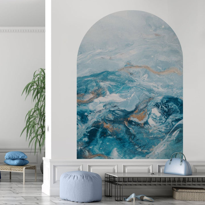 Nereida - według mitologii greckiej - nimfa morska. Przepiękny ręcznie malowany wzór w kolorach turkusu, błękitu, bieli, oraz detali w kolorze złota- przynosi na myśl morską toń lazurowego wybrzeża. Świetnie sprawdzi się w sypialni, salonie, łazience i kuchni.
