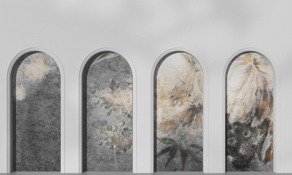 Harmony jest reprodukcją obrazu holenderskiego malarza z XVIII wieku. Harmonijne połączenie kwiatów w kolorach beżu, kremu i szarości, na cieniowanym szarym tle, z elementami dekoracyjnymi w barwach złota, tworzy piękną kompozycję. Bogaty i zdobny wzór będzie idealną ozdobą wnętrz minimalistycznych oraz klasycznych.