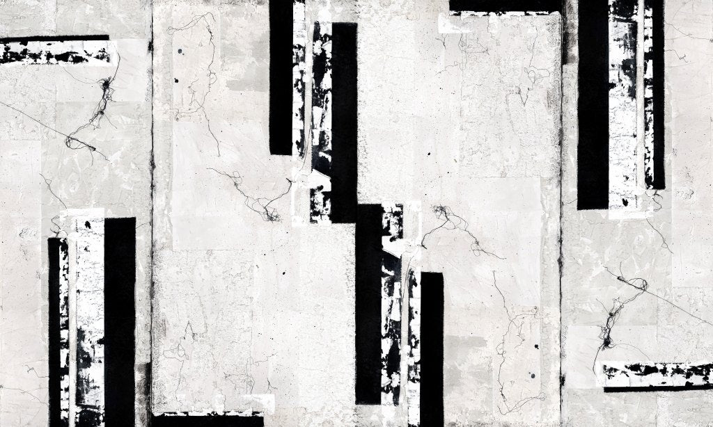 Mezzo to abstrakcyjna kompozycja z dominującymi pionowymi i poziomymi czarnymi liniami na teksturowanym tle. Mnogość odcieni bieli i szarości, z dodatkowymi elementami w postaci drobnych, nieregularnych czarnych linii i plam, nadaje Mezzo wyjątkowo elegancki, industrialny i surowy charakter. Całość stanowi złożoną, harmonijną i przemyślaną kompozycję.