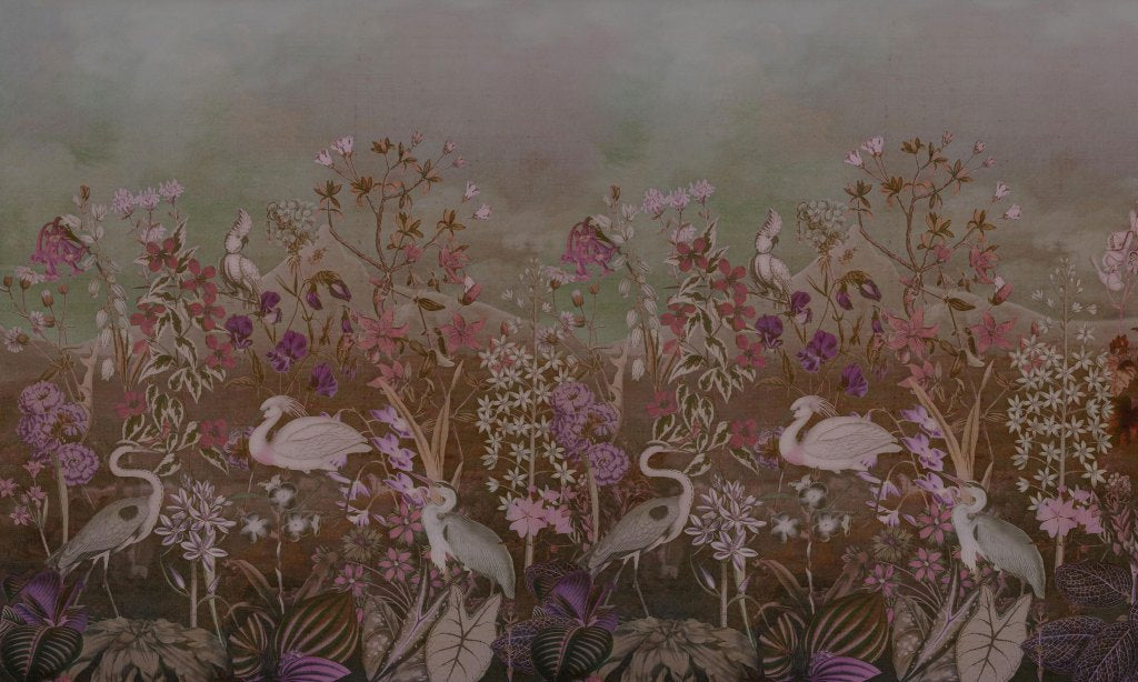 Paradiso to urokliwa, bardzo bajkowa scena natury pełnej barw i życia. Na pierwszym planie znajduje się rozległa łąka, pokryta bujną roślinnością, wśród której przechadzają się egzotyczne ptaki. Kompozycja utrzymana w odcieniach różu i fioletu przełamana kolorami ziemi, co dodaje romantycznego i delikatnego charakteru. Bloom świetnie wpasuje się zarówno do wnętrz w stylu glamour, ale także jako przełamanie nieco surowszego wystroju.