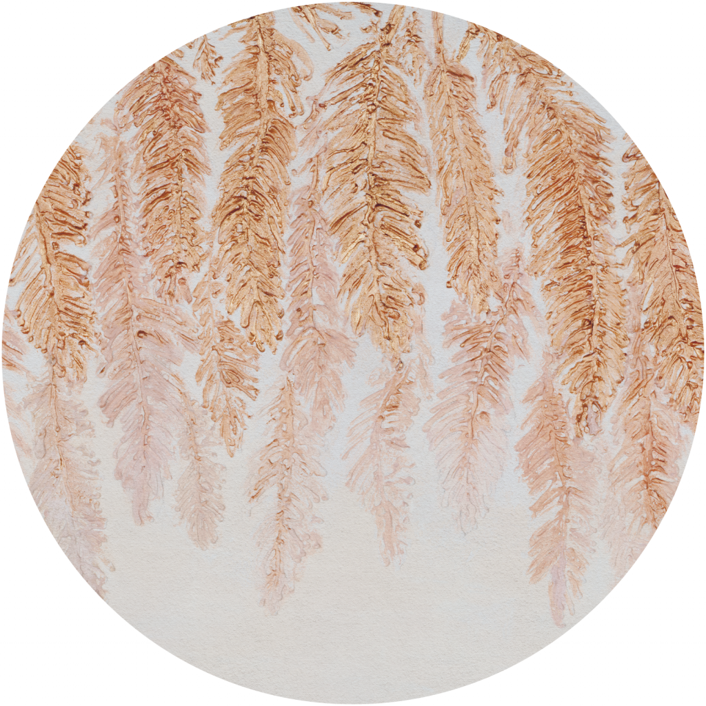 Piuma jest artystyczną interpretacją bardzo popularnego motywu piór. Dosłowność w ozdobach ścian bywa bardzo przytłaczająca, dlatego złoto-miedziany ornament wykonany pastą strukturalną i ręcznie pomalowany będzie bardzo elegancką alternatywą. Białe tło tonuje bogactwo złoceń, a ręcznie wykonane ornamenty pozostawiają duże pole do interpretacji. Piuma to idealna propozycja do wnętrz w stylu organicznym oraz minimalistycznym.