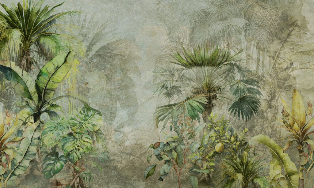 Tapeta Rainforest w różnych wariantach jest niesłabnącym ulubieńcem wśród naszych tapet. Silva jest równie subtelna, ale prezentuje tropikalny las w nieco bardziej soczystej kolorystyce. Oprócz pięknych palm i rozłożystych monster pojawiają się również drzewka owocowe, dzięki czemu Silvę można zaaranżować nie tylko w salonie czy sypialni, ale również w kuchni.