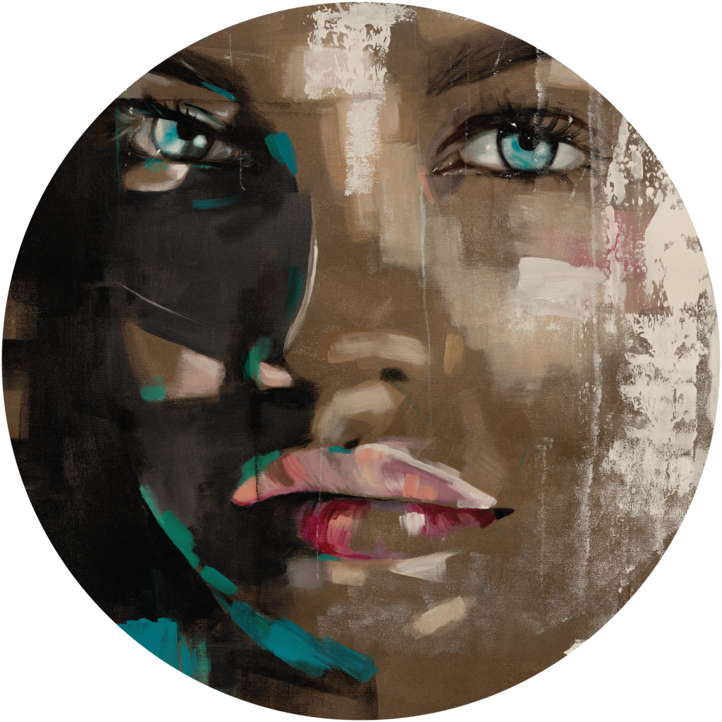 Loca, egzotyczny portret kobiety choć zachowany w charakterystycznej dla Bożeny Sieczyńskiej palecie brązów hipnotyzuje lazurowym spojrzeniem. Zastosowanie elementów nasyconej fuksji i głębokich niebieskości przełamuje łagodność i stonowanie brązów i bieli, otwierając całkiem nowe możliwości aranżacyjne.
