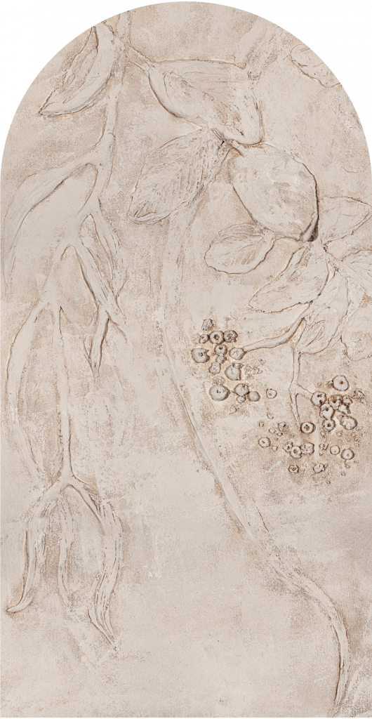 Amore przedstawia subtelną, monochromatyczną kompozycję inspirowaną naturą. Dominujące delikatne, wypukłe wzory przedstawiające gałęzie, liście i kwiaty, które zostały misternie wkomponowane w tło o delikatnej, piaskowej fakturze. Całość utrzymana jest w ciepłych odcieniach beżu, co nadaje obrazowi elegancji i spokoju. Dzięki swojej neutralnej kolorystyce i delikatnemu wzornictwu, Amore idealnie nadaje się do wnętrz urządzonych w stylu klasycznym, skandynawskim czy boho. W zestawieniu z naturalnymi materiałami, takimi jak drewno, len czy bawełna, obraz będzie doskonale współgrał, podkreślając organiczny charakter wnętrza.