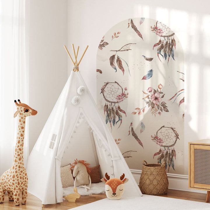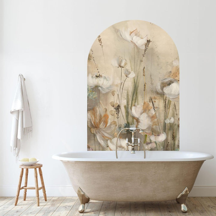 Nasza tapeta w formie łuku ma szerokość 130 cm i wysokość 250 cm – to gotowy, precyzyjnie zaprojektowany element dekoracyjny, który możesz zastosować bez żadnych przeróbek czy skomplikowanego montażu. Wydrukowana jest na samoprzylepnym, zmywalnym materiale o subtelnej strukturze płótna, który z łatwością przykleisz samodzielnie nie tylko na ścianie, ale też na meblach, szkle czy innej gładkiej powierzchni.