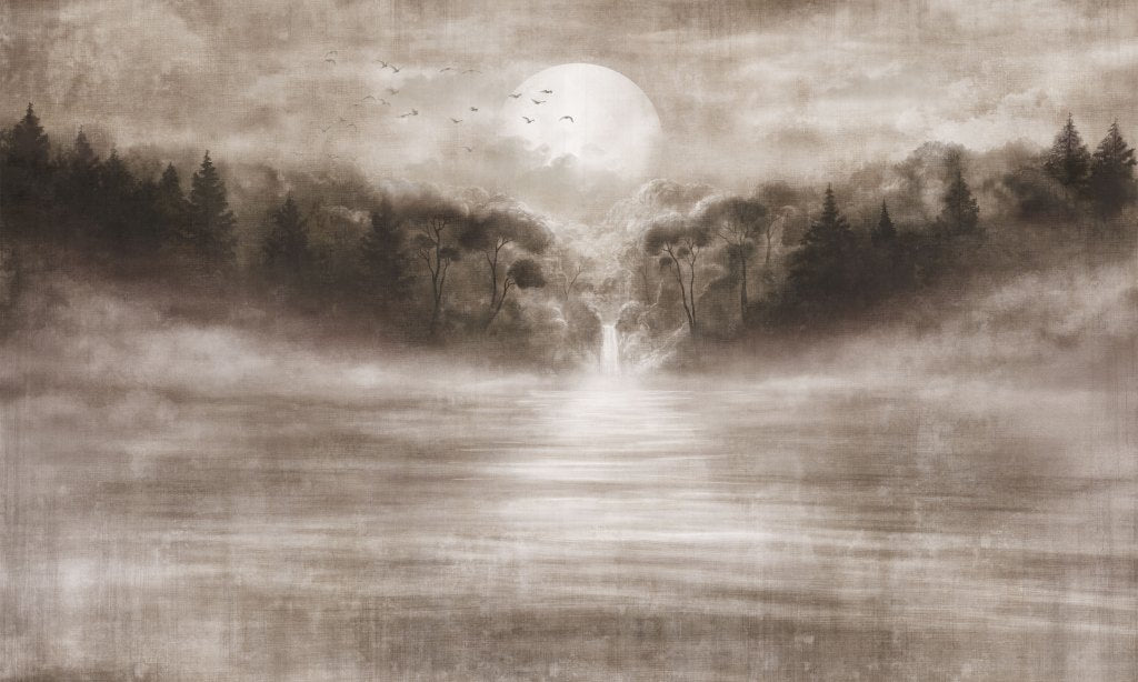 Tramonto to nieco tajemniczy krajobraz nocnego krajobrazu w dziewiczym lesie. Artystyczna wersja popularnego motywu wodospadu, przedstawiona w nieoczywistej, malarskiej formie dodaje Tamonto elegancji i pozwala zaaranżować w nowoczesnych wnętrzach. Księżyc i zachmurzone niebo odbijające się w zamglonej tafli jeziora daje poczucie ukojenia i rozprężenia. Ten nocny pejzaż będzie idealnym wyborem do sypialni czy salonu.