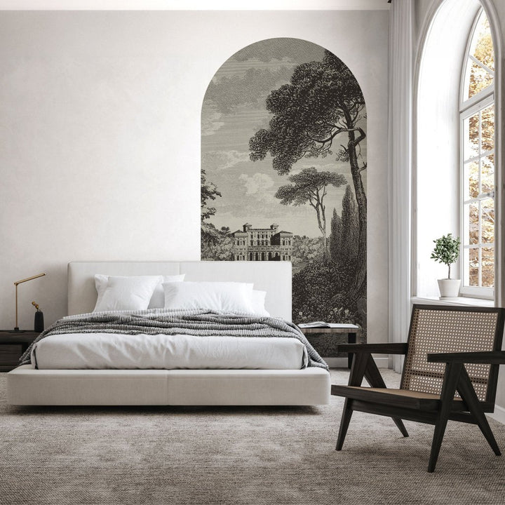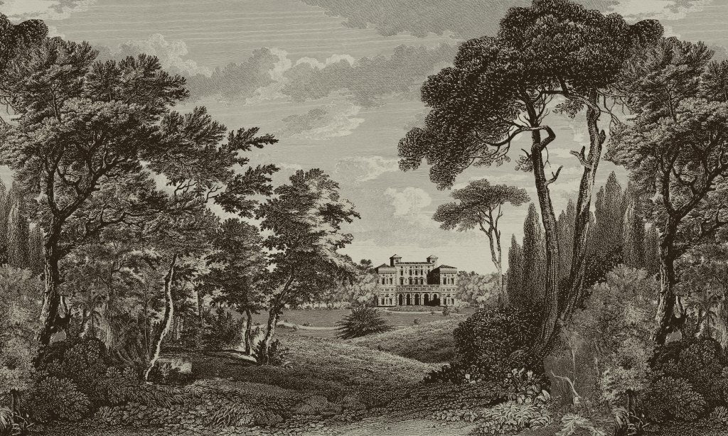 Cartagine przedstawia malowniczą scenę krajobrazową, wykonaną w stylu klasycznej ryciny. Na pierwszym planie widzimy bujną, zalesioną okolicę, pełną różnorodnych drzew i krzewów, które tworzą naturalną ramę dla dalszej części widoku. Cała scena emanuje spokojem i harmonią, ukazując piękno natury i architektury splecione ze sobą w idealnej symbiozie. Detale są wykonane z precyzją, co nadaje Cartagine charakteru i elegancji typowej dla dawnych rycin, dzięki czemu znakomicie wpisze się w klasyczny wystrój wnętrza.