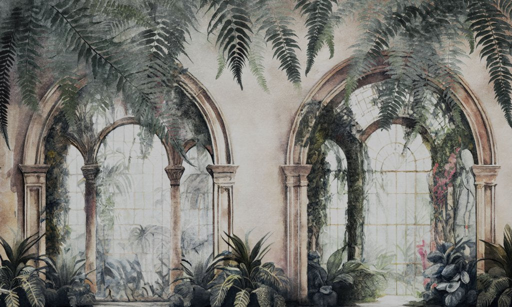 Aranciera to fuzja dwóch motywów, które od lat królują w wystroju wnętrz: roślin i łuków. Wzór przedstawia tajemniczą oranżerię, w której bujna roślinność niemalże całkowicie zdominowała przestrzeń. Antyczne łuki i kolumny dodają głębi i trójwymiarowości optycznie powiększając pomieszczenie. Zgaszona kolorystyka dodaje elegancji i lekkości, a nieco rozmyta technika akwareli- finezji.