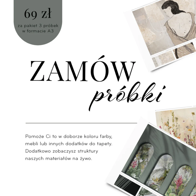 Nie wiesz jaki wybrać wzór lub materiał? Nie masz przekonania jak będą wyglądały kolory tapety na żywo, w Twoim pomieszczeniu? Zamów zestaw 3 próbek w formacie A3 i przekonaj się jak piękne i wytrzymałe są nasze tapety!