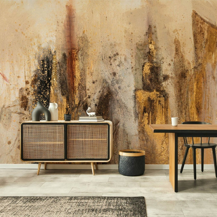 „Capital” opiera się na intensywnych, ciepłych tonacjach ziemi: ochra, złoto, miedź, rdzawy brąz i głęboka czerń budują kontrast i dramatyzm. Pojawiające się akcenty metalicznych refleksów – szczególnie złotych – przyciągają uwagę i nadają wzorowi luksusowego charakteru. Kolorystyka idealna do wnętrz z charakterem, w których dominują naturalne materiały lub wyrafinowane, artystyczne akcenty.