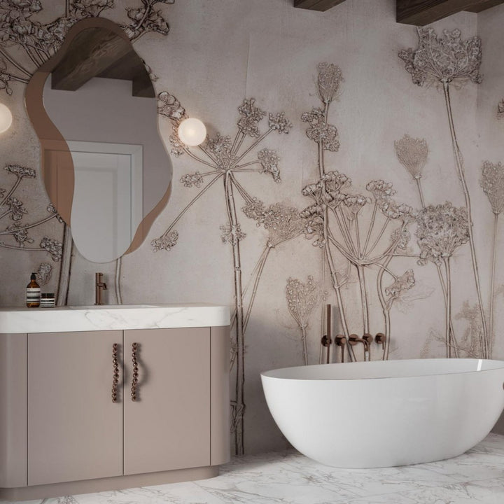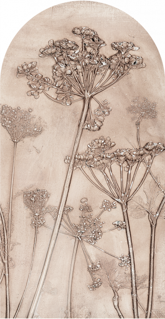 Tapeta „Erbario” to wyjątkowa propozycja dla miłośników subtelnych, naturalnych motywów w nowoczesnej odsłonie. Wzór inspirowany jest suszonymi roślinami oraz tradycją zielników – delikatne łodygi i baldachy kwiatów tworzą organiczną kompozycję, która zachwyca przestrzennością i artystyczną precyzją. Trójwymiarowy efekt płaskorzeźby na matowym tle nadaje tapecie wyjątkowego charakteru, budując harmonijną atmosferę w każdym wnętrzu.