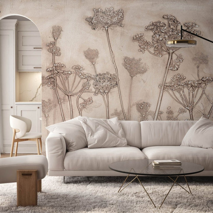 Tapeta „Erbario” to wyjątkowa propozycja dla miłośników subtelnych, naturalnych motywów w nowoczesnej odsłonie. Wzór inspirowany jest suszonymi roślinami oraz tradycją zielników – delikatne łodygi i baldachy kwiatów tworzą organiczną kompozycję, która zachwyca przestrzennością i artystyczną precyzją. Trójwymiarowy efekt płaskorzeźby na matowym tle nadaje tapecie wyjątkowego charakteru, budując harmonijną atmosferę w każdym wnętrzu.