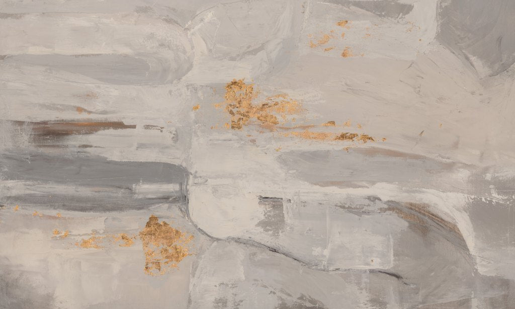 Fossil to abstrakcyjne dzieło, które tworzy iluzję trójwymiarowości. Pociągnięcia pędzlem układają się w obłe kształty, przywodzące na myśl materiał, w który dmie lekki wiatr. Nieco melancholijna skala odcieni szarości i złote elementy, sprawiają, że Fossil wpasuje się w nowoczesne, stonowane wnętrza z klasycznym twistem.