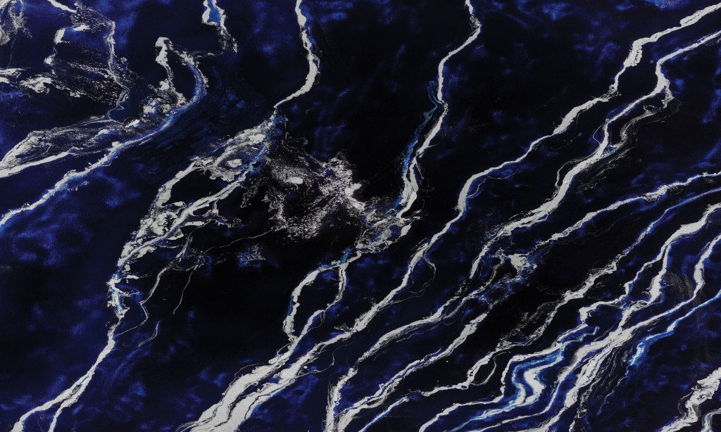 Hades- starożytny bóg podziemia, a w ziemi woda ma swoje źródła... Motyw kamienia - niebieskiego marmuru, przeszywany srebrnymi żyłami niczym strumieniem wody. Odważny, intensywny wzór w odcieniach granatu, ultramaryny i kolorze srebra. Świetnie sprawdzi się w sypialni, salonie, łazience i kuchni.