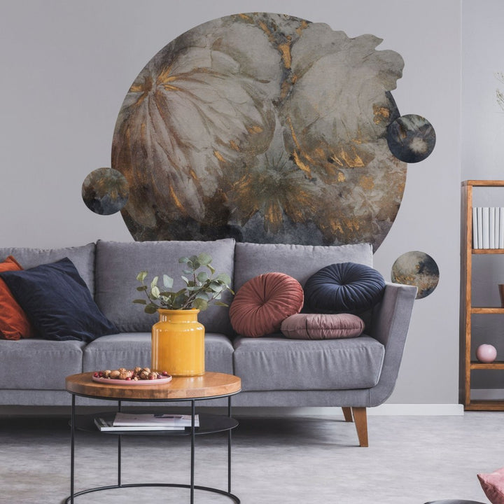 Tapeta Harmony Blue to bestsellerowy klasyczny wzór w barwach granatu, szarości, złamanych beżem i kolorach złota. Idealne uzupełnienie aranżacji w małych wnętrzach, pasuje do stylu boho, naturalnego, nowoczesnego i klasycznego.