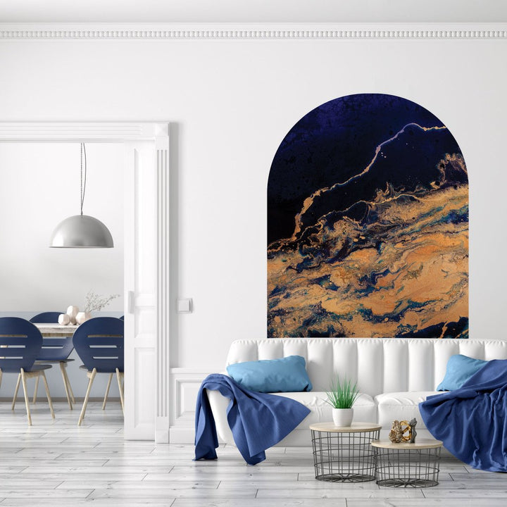 Hypnos- grecki bóg snu, postrzegany jako pan snu. Motyw kamienia - niebieskiego marmuru, przeszywany złotymi żyłami niczym gwiazdy na niebie. Odważny, intensywny wzór w odcieniach granatu, miejscami szmaragdu i turkusu, oraz intensywna łuna w kolorze złota. Świetnie sprawdzi się w sypialni, salonie, łazience i kuchni.