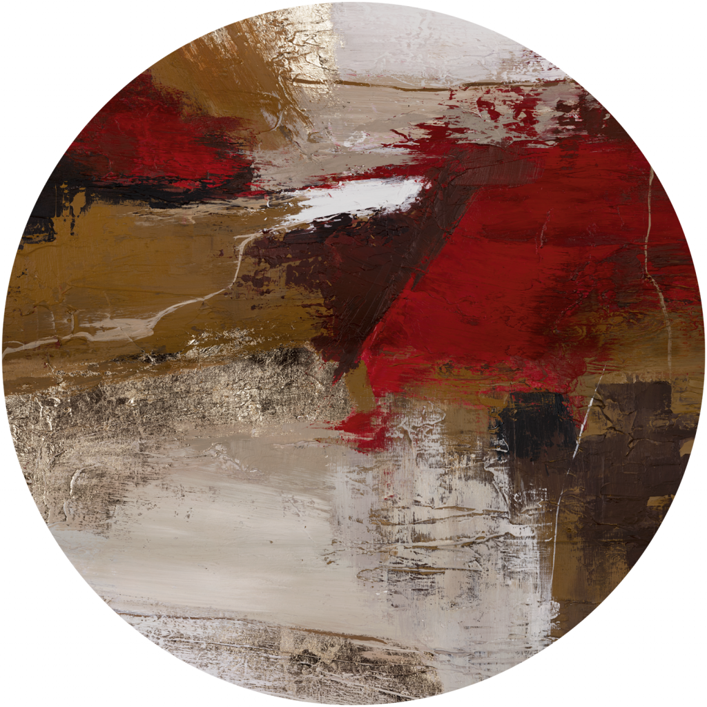 „Lava” to ekspresyjna, pełna energii kompozycja o dynamicznej strukturze i wyrazistej fakturze. Malarskie pociągnięcia pędzla tworzą organiczne układy form, w których przenikają się głębokie czerwienie, złamane brązy i odcienie ochry. Wzór przywodzi na myśl rozgrzaną, pulsującą lawę i surowe piękno ziemskich żywiołów. Fakturalne przejścia barw oraz widoczna struktura farby budują wrażenie trójwymiarowości i siły, zachowując przy tym artystyczną harmonię.