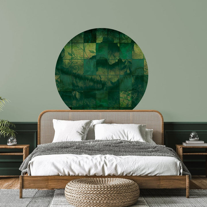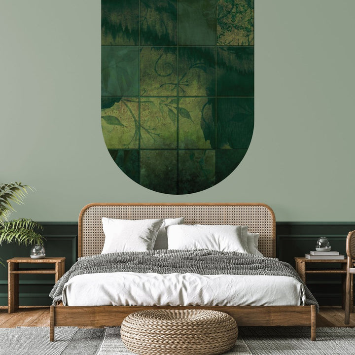 Mattonelle przedstawia nieco abstrakcyjną i złożoną scenę, której głównym motywem jest natura, ukazana w różnych odcieniach zieleni. Cała kompozycja jest geometrycznie podzielona tworzące efekt industrialnych okien. W każdym z kwadratów widoczne są różnorodne detale krajobrazu, które razem tworzą spójny obraz, na którym można dostrzec sylwetki gór, które wznoszą się w tle, tworząc malowniczy pejzaż. Kolorystyka Mattonelle jest stonowana, z dominującymi odcieniami zieleni, od ciemnych, głębokich tonów po jaśniejsze, niemal pastelowe. Tło jest delikatnie teksturowane, co dodaje głębi i złożoności. To znakomity wybór do sypialni jak również jako centralny punkt salonu.