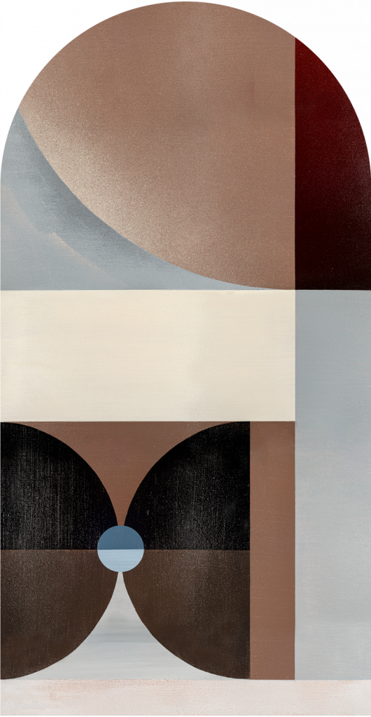 „Opus” to graficzna kompozycja inspirowana modernistycznym malarstwem abstrakcyjnym oraz estetyką Bauhausu. Wzór zbudowany jest z precyzyjnie rozmieszczonych figur geometrycznych – półokręgów, kwadratów, prostokątów i linii – tworzących modularny układ o rytmicznym charakterze. Każdy element został dopracowany w detalach fakturowych i kolorystycznych: pojawiają się powierzchnie przypominające beton, szlifowany kamień, matowe tynki oraz gładkie, malarskie przejścia. Kompozycja jest zamknięta w ramach wyrazistych bloków, co nadaje całości wrażenie uporządkowanej architektury graficznej. „Opus” to hołd dla abstrakcji geometrycznej i strukturalnego minimalizmu, który działa we wnętrzu niczym mural – odważnie, artystycznie i z charakterem.