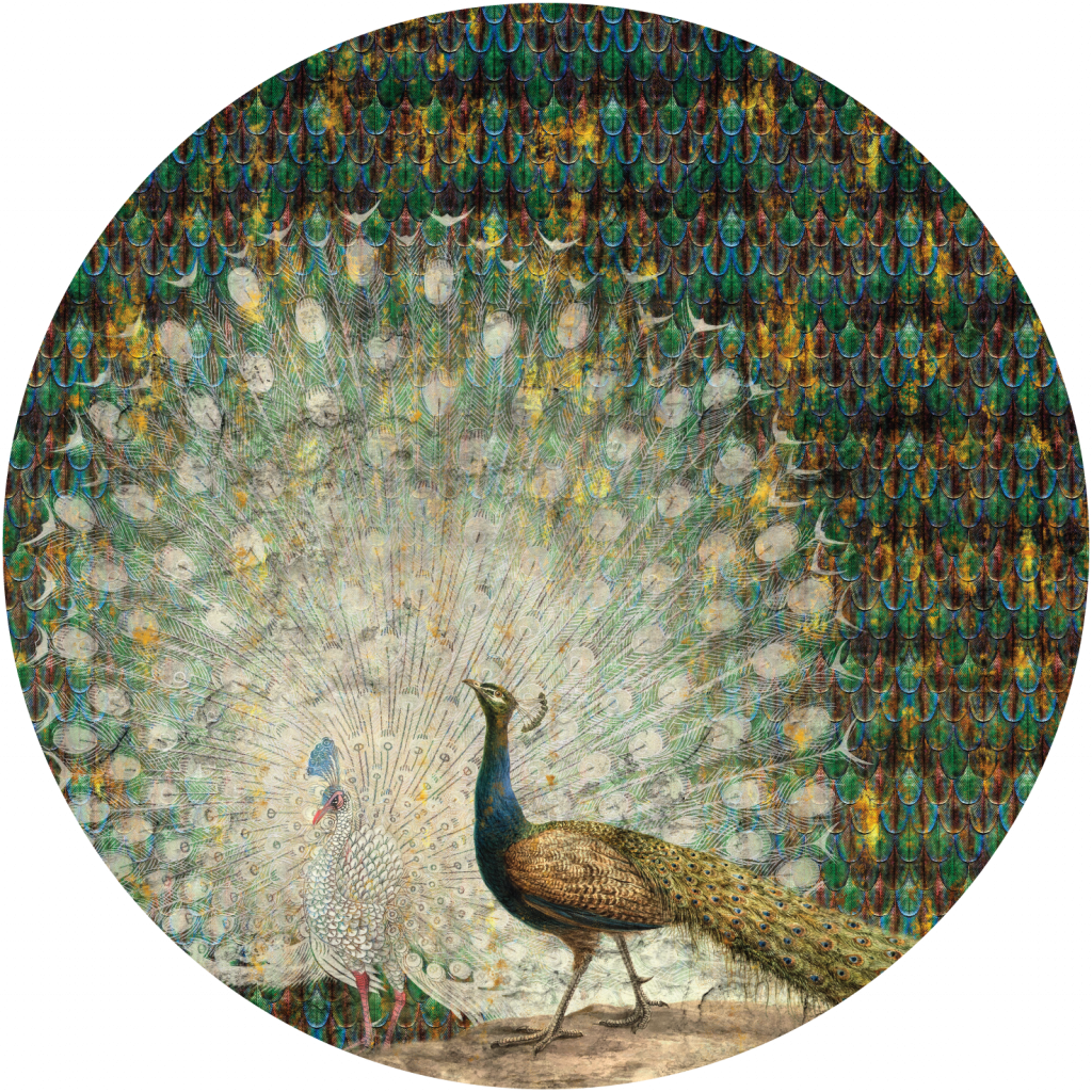 Tapeta Peacock to bogato zdobiony wzór, o dużym nasyceniu kolorystycznym. Piękne dwa pawie pokazane są na teksturze z piór mieniących się kolorami tęczy. Wzór jest bardzo odważny i awangardowy, idealnie wpasuje się do wnętrz stylizowanych lub super minimalistycznych jako element przyciągający oko.