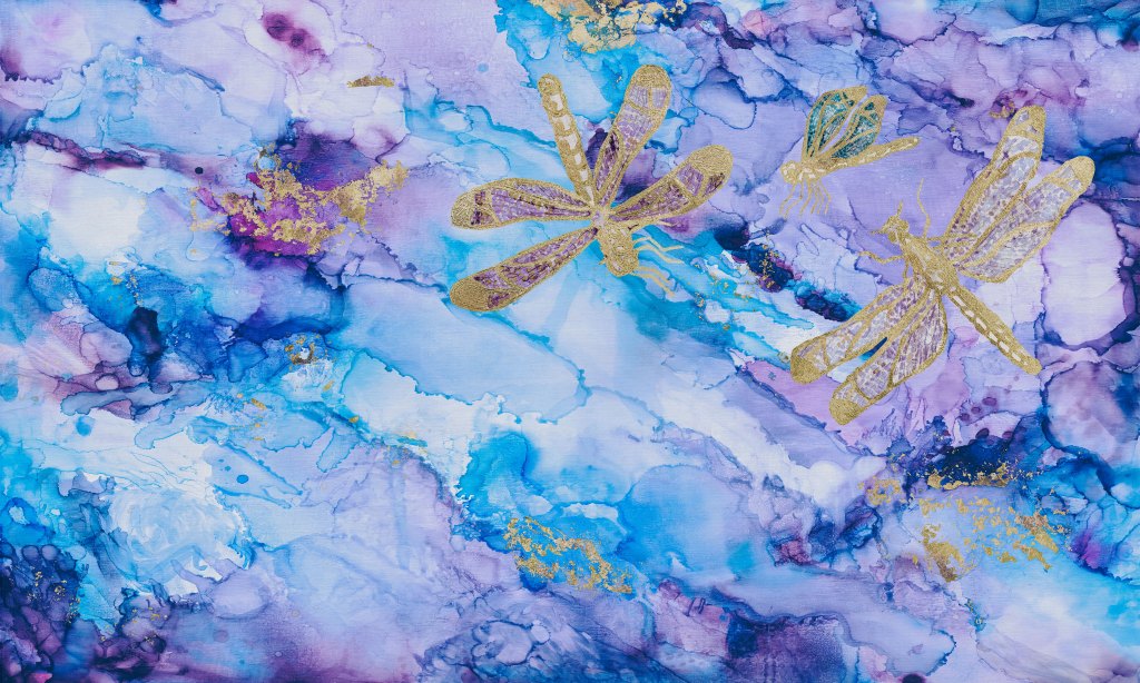 Kolekcja Arte to wzory namalowane przez polskich artystów. Kolekcja ręcznie malowanych grafik przez Pracownię Annowa - premierowy wzór tapeta Portafortuna z włoskiego amulet. Akwarelowy obraz w intensywnych barwach oraz ważkami w odcieniach złota.