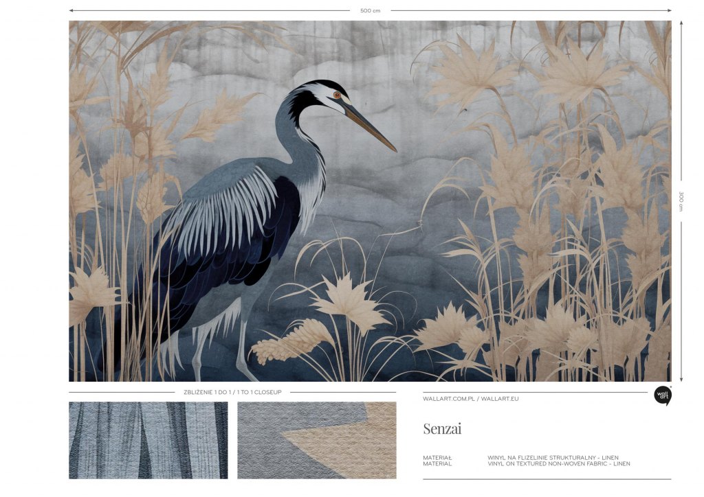 Senzai przedstawia majestatycznego żurawia stojącego pośród wysokich, delikatnych traw i kwiatów w subtelnych odcieniach beżu i niebieskiego. Tło obrazu jest utrzymane w miękkich, stonowanych kolorach, które tworzą spokojną i relaksującą atmosferę. Senzai doskonale wpisuje się w wystrój wnętrz, które mają na celu stworzenie oazy spokoju i relaksu. Idealnie nadaje się do sypialni, gdzie jego łagodne kolory i naturalne motywy mogą sprzyjać wyciszeniu i odpoczynkowi. W salonie może stanowić centralny punkt dekoracyjny, przyciągając wzrok i dodając wnętrzu lekkości oraz artystycznego wyrazu. Senza pasuje również do przestrzeni komercyjnych, takich jak hotele, gabinety spa czy restauracje, gdzie ważne jest stworzenie przyjemnej i relaksującej atmosfery dla gości. W biurze może wprowadzać element natury i spokoju, co może mieć pozytywny wpływ na komfort pracy.