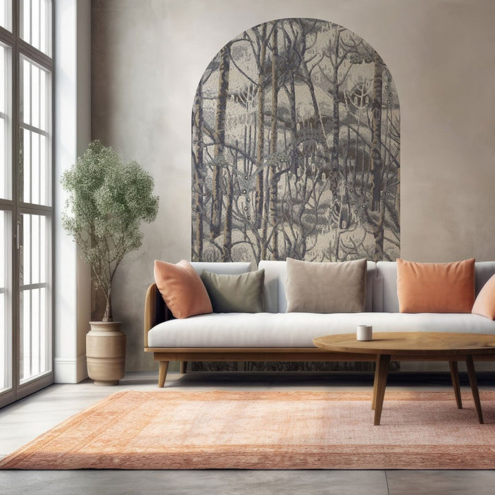 Temper to wzór inspirowany sztuką, w kolekcji Nature. Malownicze i tajemnicze drzewa w stonowanych barwach ziemii ozdobią niejedno wnętrze. Mogą stanowić główną dekorację wnętrza minimalistycznego lub być delikatnym tłem wnętrz bardziej bogatych stylistycznie.