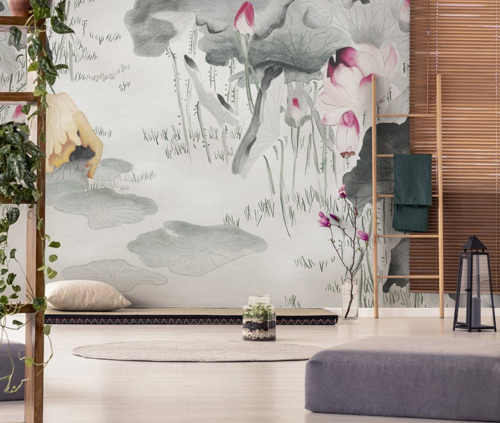 Zen to wzór inspirowany sztuką Japonii, w kolekcji Nature. Malownicze kwiaty magnolii oraz liście ginko czyli miłorzębu japońskiego, w delikatnych barwach zieleni złamanej bielą i szarością, z detalami w kolorze różu i żółci, ozdobią niejedno wnętrze.